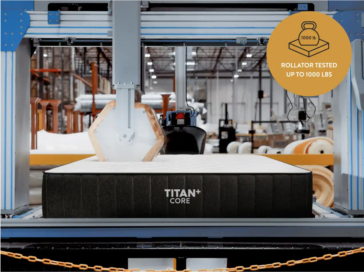 • Up to ~900 individually encased TitanCore coils provide exceptional support, durability, edge-to-edge stability, and motion isolation.