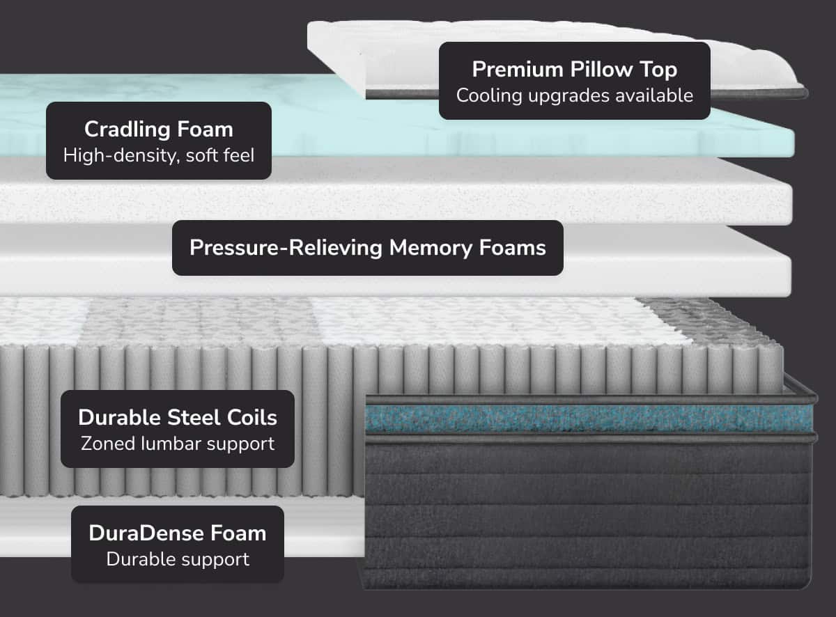 Softer top layers of the mattress to give you that soft, lavish plush comfort you love - like sinking into a cloud.