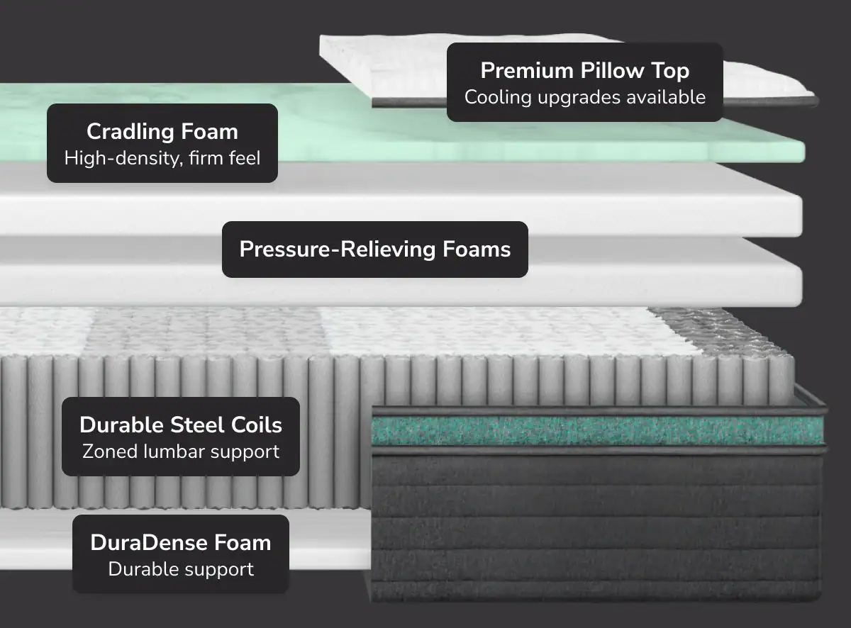 Our Luxe mattresses feature zoned lumbar support for enhanced contouring,