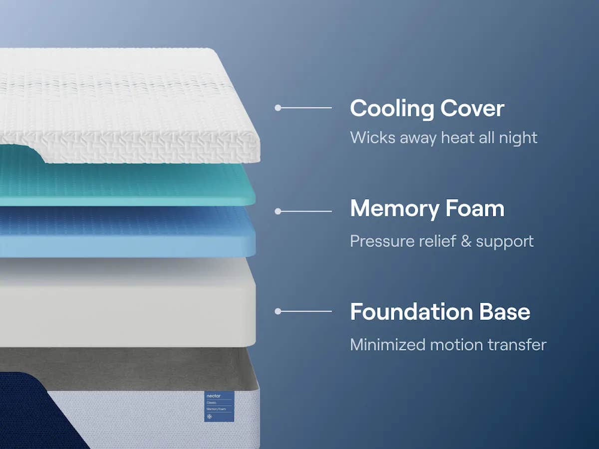 The Nectar Classic 12” Memory Foam Mattress features cooling comfort and contouring pressure relief. Revel in a medium-firm feel and responsive support that delivers a refreshing, restorative, and uninterrupted night's sleep, night after night.